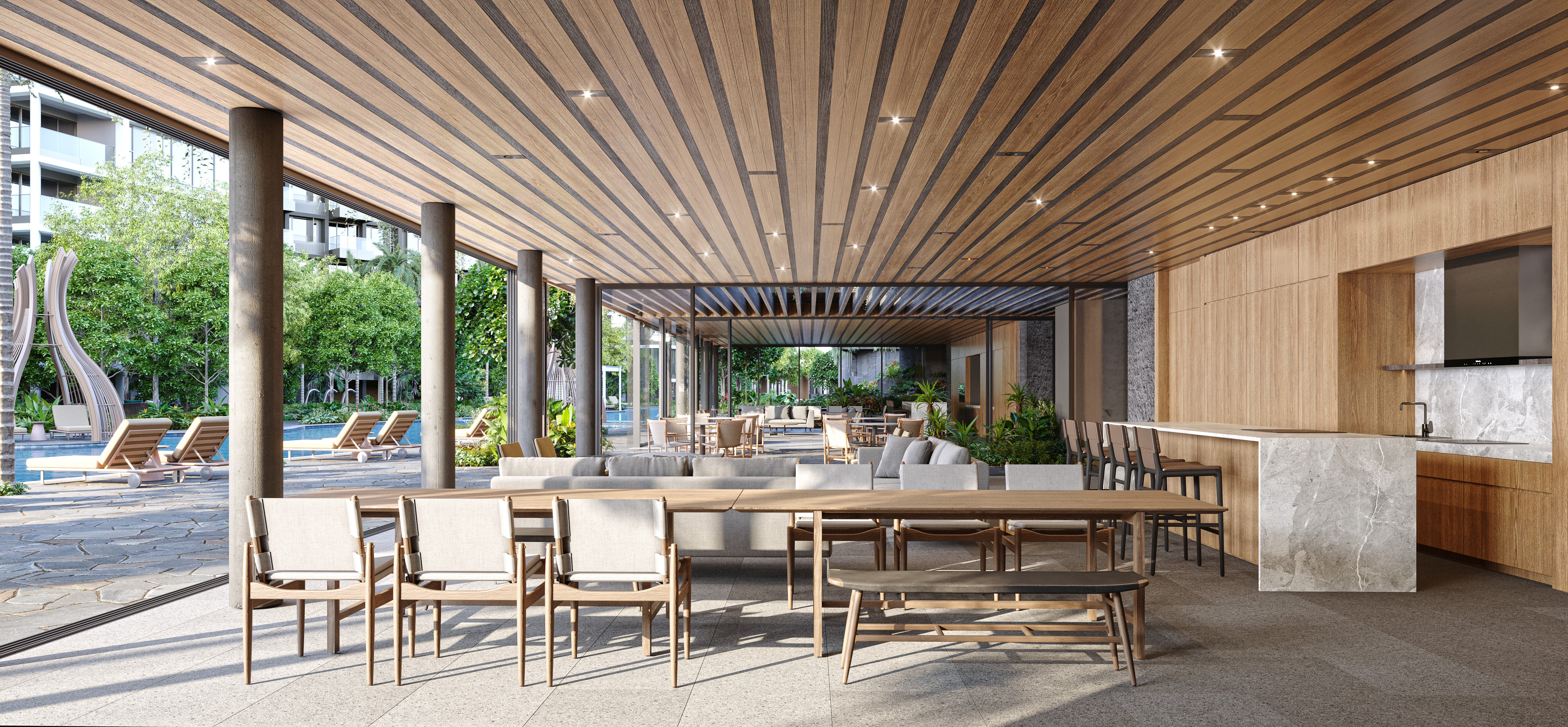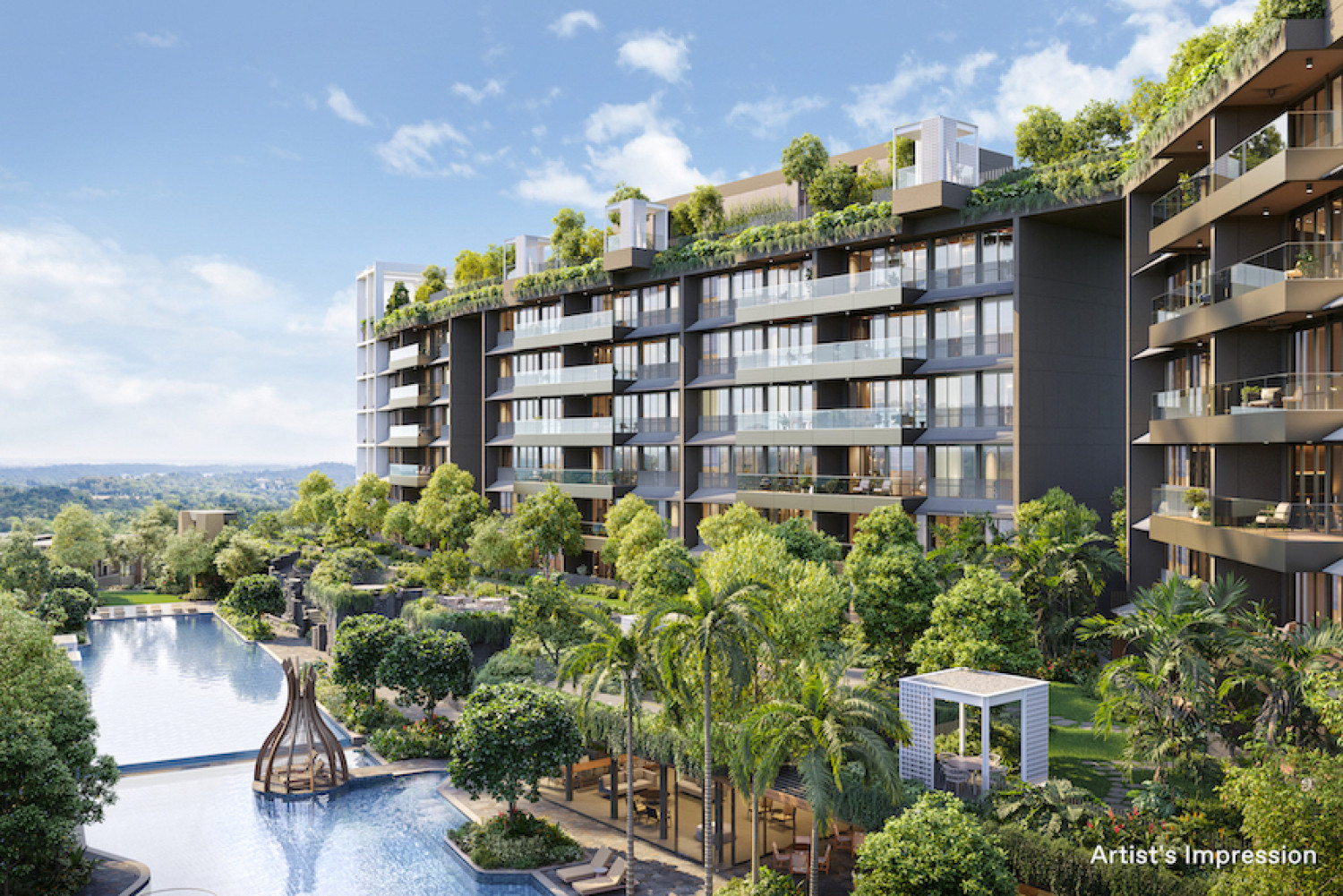 At The Reserve Residences, from a breathtaking centrepiece of interconnected pools to a sky gym, jogging trails, work pods and pavilions nestled amid lush gardens, discover myriad ways to unwind, re-energise and entertain while basking in nature’s calm embrace.