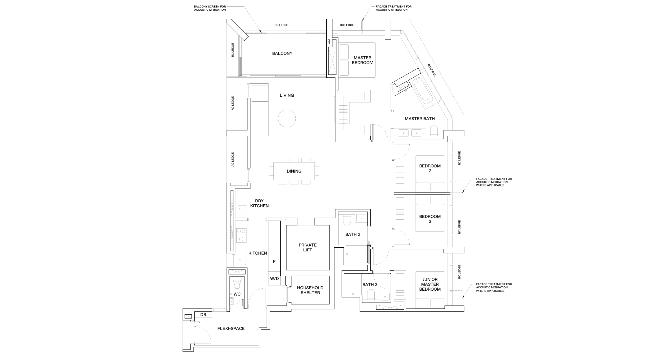 Disclaimer: While reasonable care has been taken in preparing this website, neither the developer nor its appointed agents guarantee the accuracy of the information provided. To the fullest extent permitted by law, the information, statements, and representations on this website should not be considered factual representations, offers, or warranties (explicit or implied) by the developer or its agents. They are not intended to form any part of a contract for the sale of housing units. Please note that visual elements such as images and drawings are artists’ impressions and not factual depictions. The brand, color, and model of all materials, fittings, equipment, finishes, installations, and appliances are subject to the developer’s architect’s selection, market availability, and the developer’s sole discretion. All information on this website is accurate at the time of publication but may change as required by relevant authorities or the developer. The floor areas mentioned are approximate and subject to final survey.